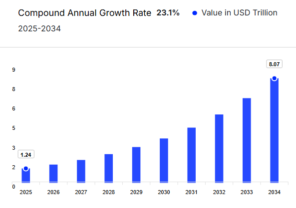 AI等を活用したさまざまな言語への翻訳や不正検知、在庫管理に加えて、物流を取り扱うレベルの向上により、2034年には越境EC市場が「約8.07兆米ドル」に達すると予測されています。
