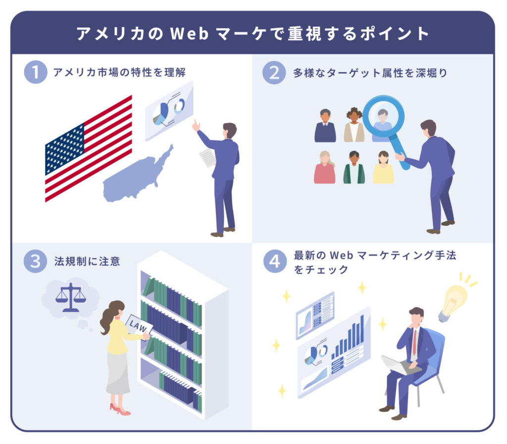アメリカ市場は、人種、年齢層、文化的多様性に富んでおり、効果的なWebマーケティング戦略を立てるためには、ターゲット属性の特性を深く理解する必要があります。